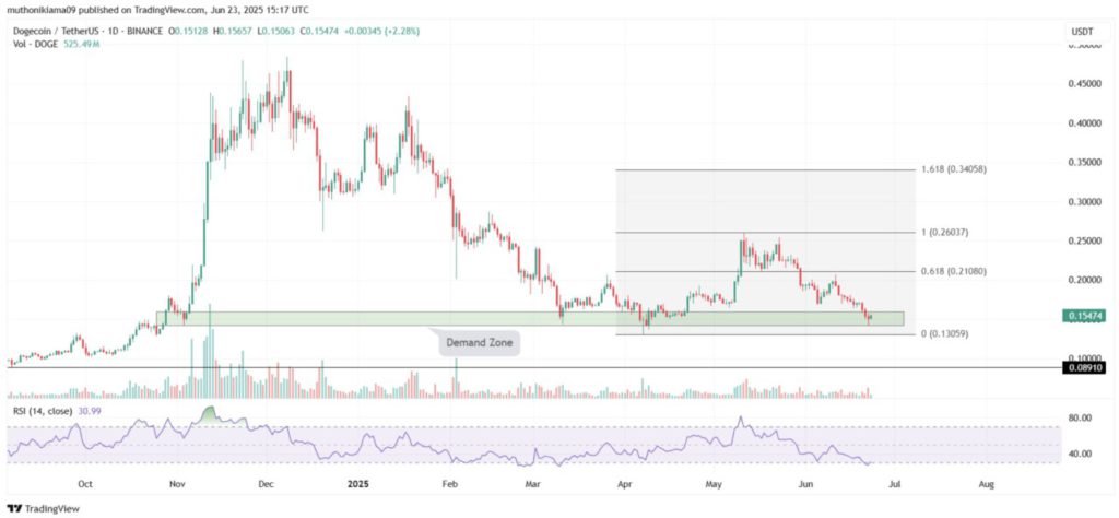 Seperti yang ditunjukkan oleh analisis teknikal, kemungkinan besar harga Dogecoin akan segera pulih karena bull berhasil mempertahankan zona permintaan yang berada di antara $0,142 dan $0,160.