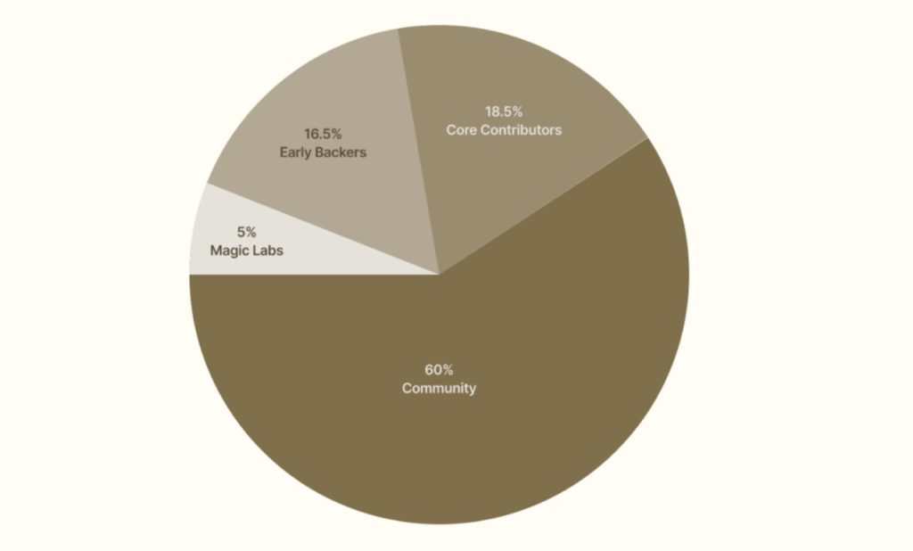 Sementara itu, 40% dialokasikan untuk pemangku kepentingan internal, termasuk kontributor inti, investor awal, dan Magic Labs. Alokasi ini akan mengikuti jadwal vesting dan distribusi secara bertahap.