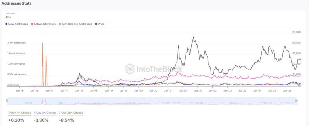 Hal ini menunjukkan bahwa meskipun minat spekulatif meningkat, aktivitas pemegang jangka panjang tampaknya mulai menurun—sebuah perbedaan arah yang membuat narasi pertumbuhan Ethereum menjadi lebih kompleks.