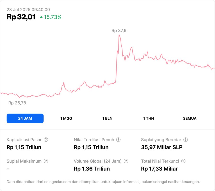 SLP sempat tertekan dalam beberapa bulan terakhir akibat perubahan mekanisme game dan pasar gaming kripto yang fluktuatif. Namun, hari ini SLP mulai kembali dilirik berkat pembaruan fitur dan sentimen positif dari komunitas gamer. Jika tren minat pada play-to-earn terus menguat, SLP berpotensi mempertahankan momentum kenaikannya. Untuk kamu penggemar game blockchain, SLP selalu menarik untuk dipantau.