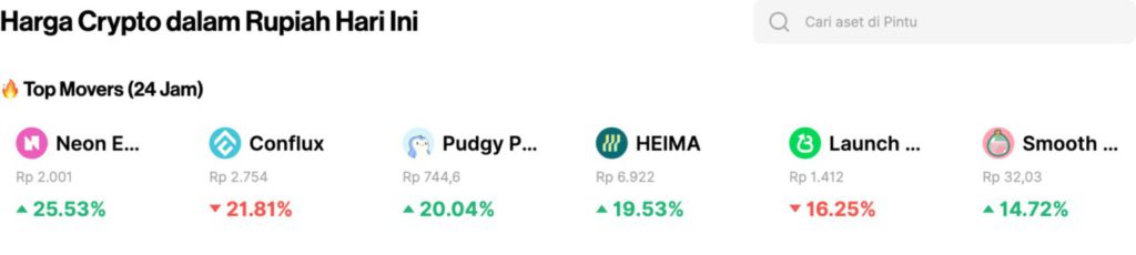 Jakarta, Pintu News ā Pergerakan harga aset kripto di Pintu Market selama 24 jam terakhir benar-benar dinamis. Hari ini, 23 Juli 2025, beberapa kripto mencatat lonjakan tajam, sementara sebagian lainnya justru mengalami penurunan signifikan alias ādiskonā. Fenomena seperti ini selalu menarik perhatian trader yang ingin memanfaatkan peluang dari naik turunnya harga. Berikut daftar 6 top movers kripto hari ini, lengkap dengan ulasan singkat agar kamu bisa menentukan langkah berikutnya.