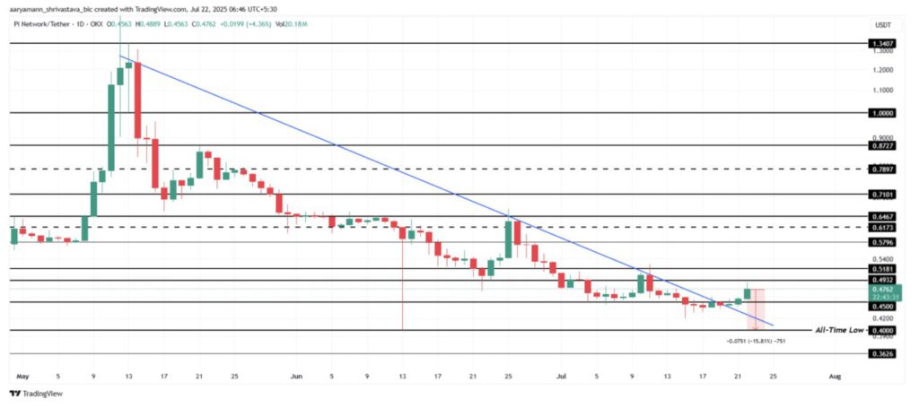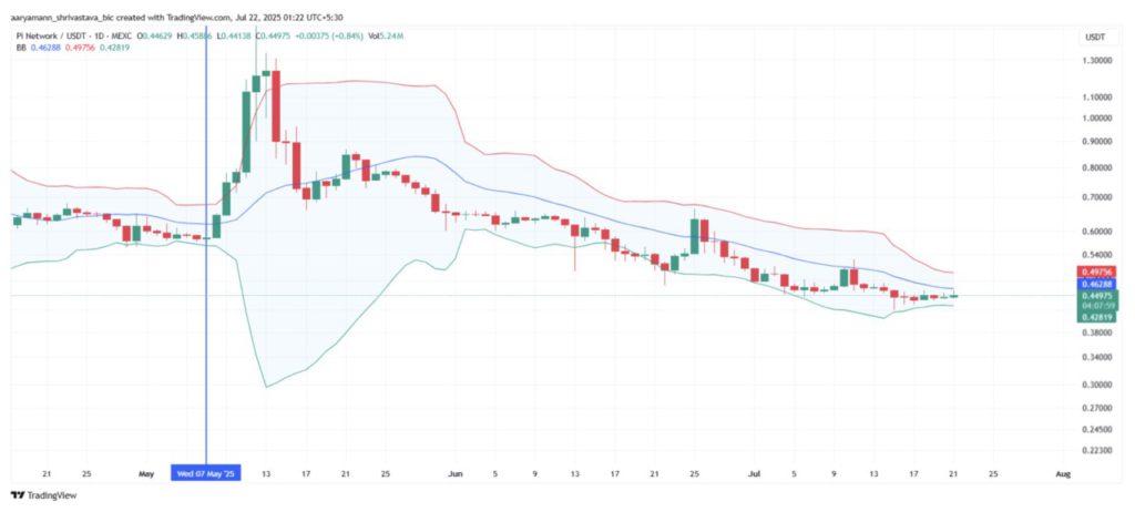 Pada 22 Juli, Pi Coin diperdagangkan di harga $0,47 setelah bergerak mendatar selama beberapa hari terakhir.