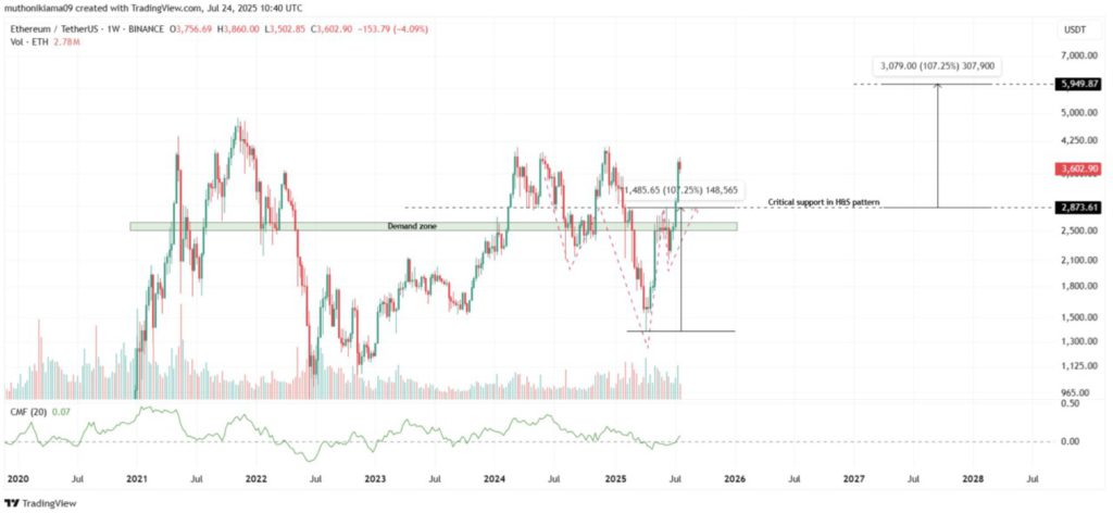 Gambar Harga Ethereum Turun ke $3.600 Hari Ini (25/7/25): ETH Berpotensi Anjlok ke $2.800?