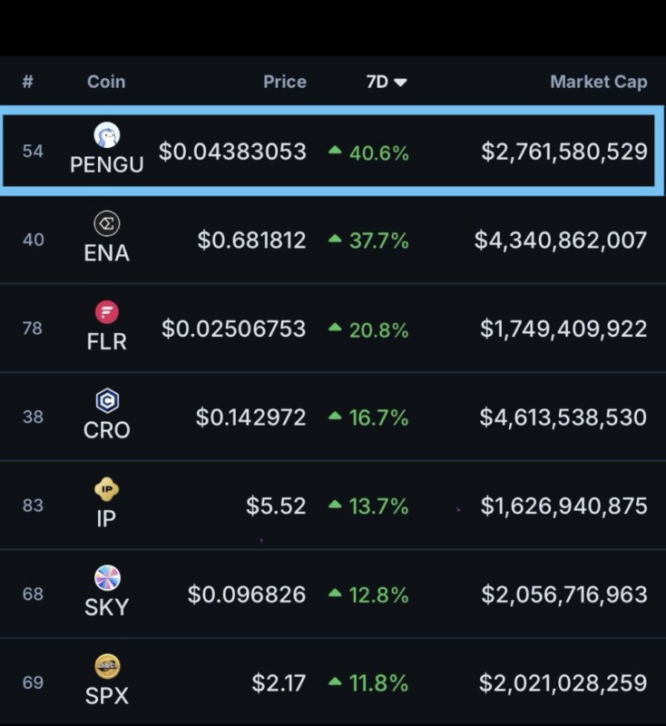Aktivitas terbaru juga menjadikan PENGU sebagai aset dengan performa terbaik minggu ini di antara 100 crypto teratas, mencerminkan meningkatnya minat dari investor ritel maupun institusional.