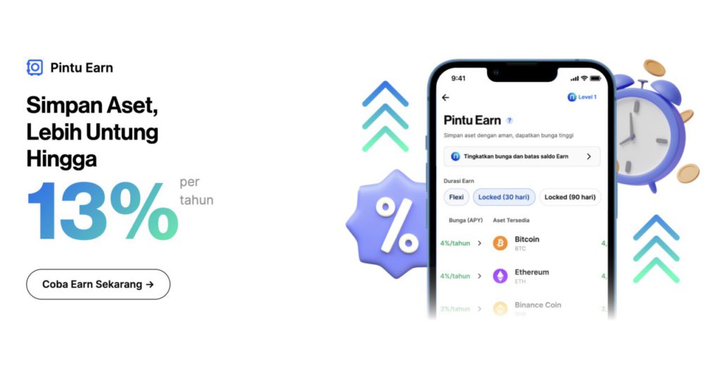 Bagi investor yang ingin lebih stabil dan tidak terlalu aktif memantau pasar setiap waktu, aplikasi Pintu, sebagai salah satu crypto exchange, menyediakan berbagai fitur untuk menciptakan potensi pendapatan pasif.