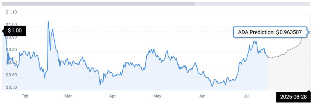 Menurut prediksi dari CoinCodex, ada kemungkinan bahwa Cardano (ADA) akan mencapai harga $0,96 pada akhir Agustus 2025. Analisis teknis menunjukkan adanya tren positif yang didukung oleh peningkatan minat investor serta pengembangan ekosistem Cardano yang terus menerus.