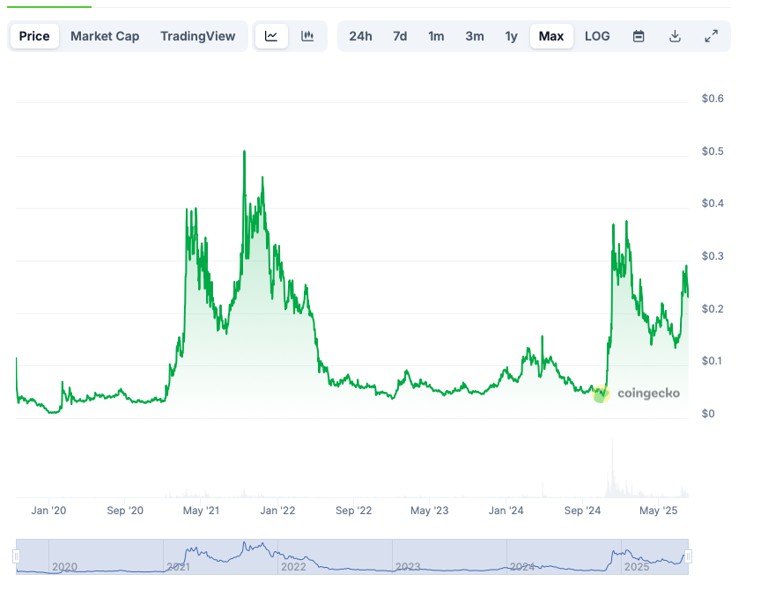 Tahun 2025 diprediksi menjadi momen kebangkitan bagi Hedera Hashgraph (HBAR), dengan proyeksi harga rata-rata di kisaran US$0,21–US$0,33 (sekitar Rp3.440–Rp5.406). Jika skenario bullish terjadi, HBAR bisa mencapai US$0,33 (Rp5.406), yang artinya naik sekitar 80% dari harga saat ini.