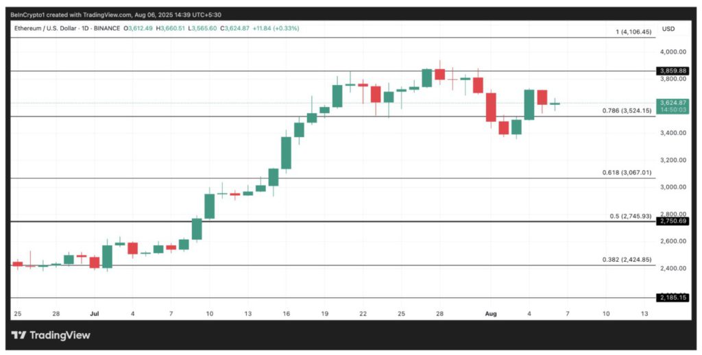 Sejak 21 Juli, altcoin ini berulang kali mencoba menembus level resistensi di sekitar $3.859, namun tetap tertahan dan mendapat dukungan di kisaran $3.524.