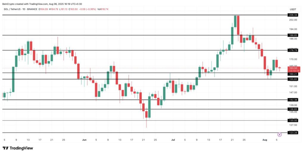 Saat ini, harga SOL masih bertahan di atas level support $160. Jika level ini mampu dipertahankan dan harga berhasil kembali menembus $176 (sekitar 10% lebih tinggi dari posisi sekarang), maka tren jangka pendek bisa berbalik menjadi bullish.
