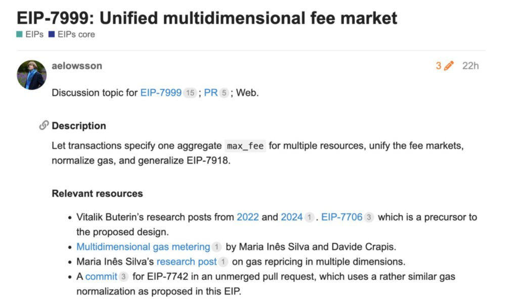 Vitalik Buterin dan Anders Elowsson telah mengajukan proposal yang dikenal sebagai EIP-7999, yang bertujuan untuk menyederhanakan struktur biaya di Ethereum.