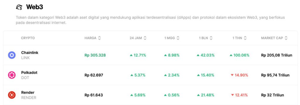 Jakarta, Pintu News ā Pasar crypto hari ini menampilkan pergerakan menarik dari 3 aset besar di sektor Web3, sebuah kategori yang berfokus pada aplikasi terdesentralisasi dan infrastruktur internet masa depan.