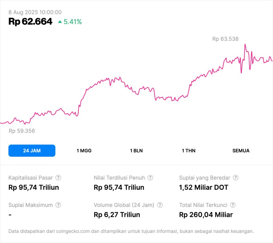 Meskipun secara tahunan DOT masih mencatat penurunan, dalam jangka pendek Polkadot mulai menunjukkan sinyal pemulihan. Peningkatan volume perdagangan harian menjadi salah satu faktor pendorong harga.