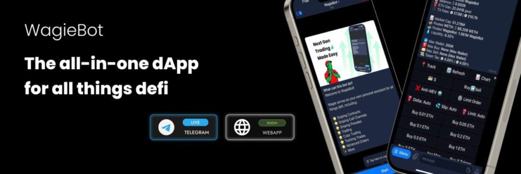 Wagie Bot juga memiliki token utilitas WAGIEBOT yang memberikan diskon biaya transaksi (dari 0,8% hingga 0,3%), akses ke fitur premium seperti active snipes, dan keuntungan grup eksklusif.