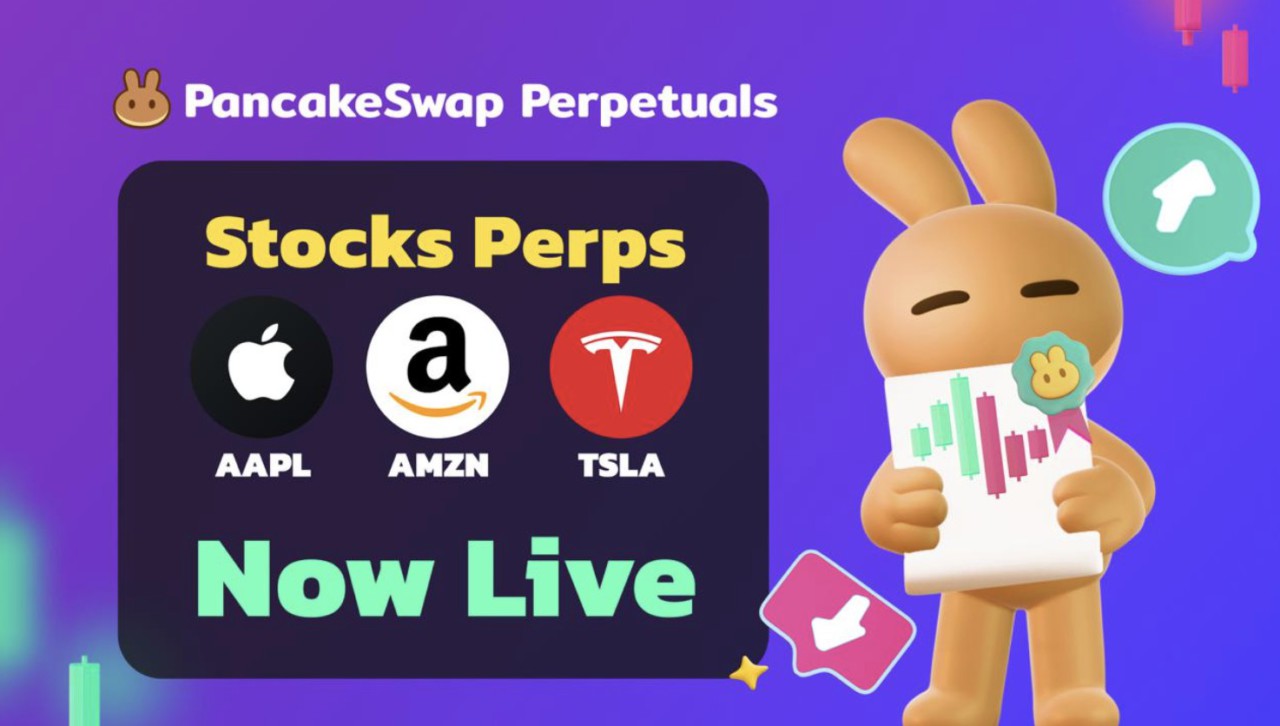 Dalam pengumuman terbarunya, PancakeSwap — salah satu protokol DeFi terkemuka di jaringan BNB Chain — resmi meluncurkan kontrak berjangka tanpa batas (perpetual contracts) untuk tiga saham ikonik Amerika Serikat: Apple (AAPL), Amazon (AMZN), dan Tesla (TSLA). Kontrak ini tersedia di PancakeSwap V3 dengan dukungan leverage hingga 25x.