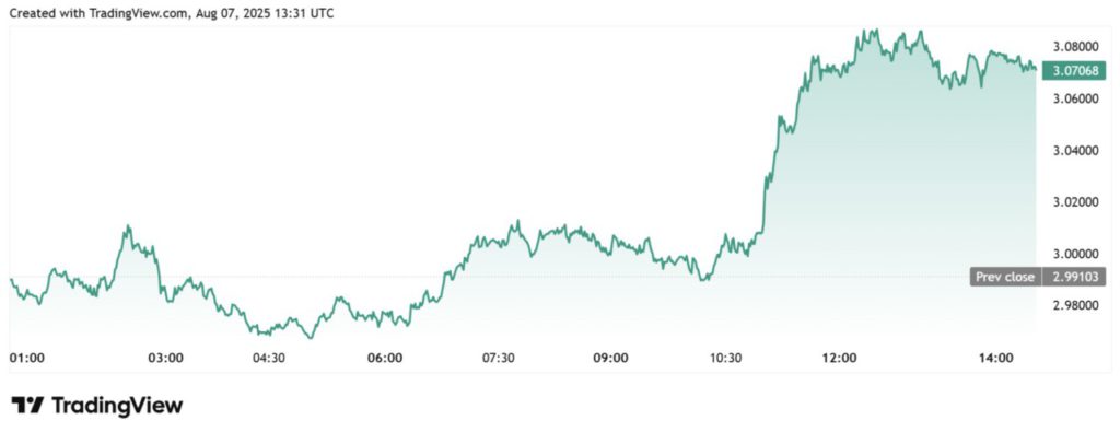 Berdasarkan data TradingView, harga XRP naik menyusul pengumuman ini. Saat ini altcoin tersebut diperdagangkan di kisaran 3,073 dolar AS, menguat lebih dari 4% dalam 24 jam terakhir (7/8).