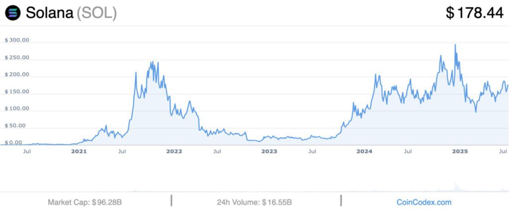 Memasuki 2025, tren positif masih berlanjut meskipun disertai fluktuasi, dengan harga SOL yang mencatat all-time high barunya di sekitar $293.31 dan per Agustus 2025 berada di sekitar $178,44.