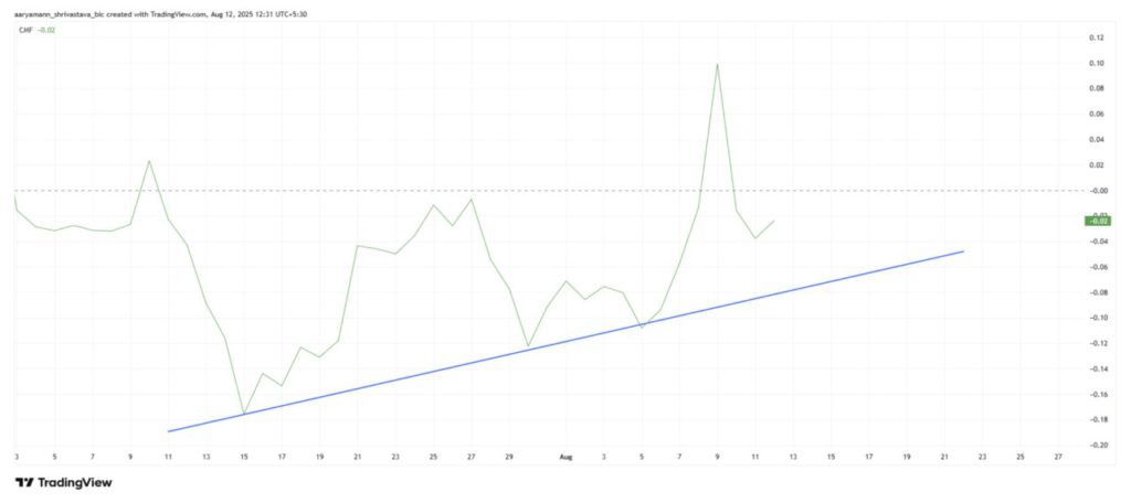 Namun, indikator Chaikin Money Flow (CMF) menunjukkan kenaikan positif, menandakan adanya arus masuk modal ke Pi Coin. Hal ini mengindikasikan peningkatan minat investor, meskipun tingkat komitmennya masih berfluktuasi.