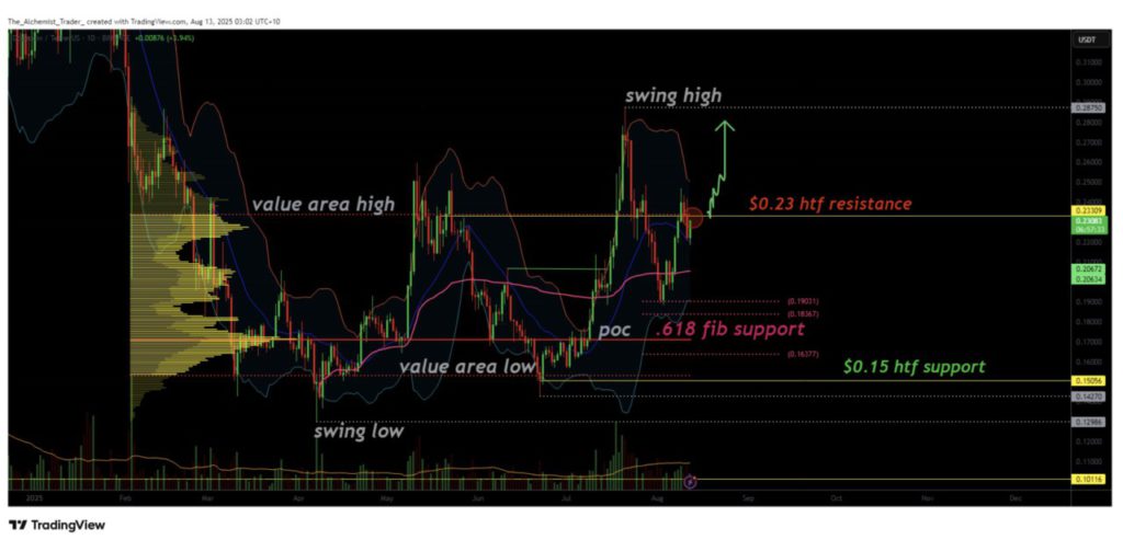 Jika terjadi breakout, trader momentum dapat mengincar kelanjutan pergerakan menuju target $0,28.