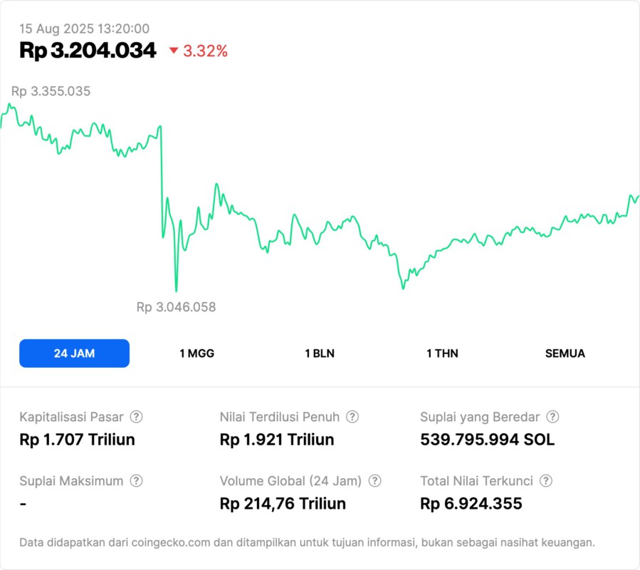 Jika harga SOL dapat bertahan di atas $205, ini akan menjadi sinyal positif untuk bulls. Namun, jika gagal mempertahankan level tersebut, kemungkinan harga akan terkoreksi menuju area support di sekitar $178 (sekitar Rp2,87 juta).