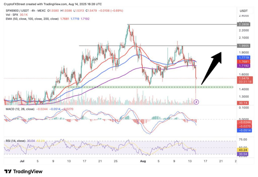 Untuk SPX6900, jalur yang paling mudah ditempuh saat ini adalah penurunan, didukung oleh penurunan RSI yang mendekati area oversold pada chart 4-jam (14/8). MACD juga menunjukkan sinyal jual yang kemungkinan akan mempertahankan bias bearish.