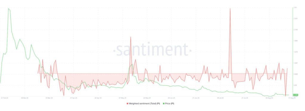 Sentimen investor terhadap Pi Coin menurun tajam, mencapai titik terendah dalam empat bulan terakhir. Penurunan ini menandakan menurunnya antusiasme karena para trader menjadi semakin berhati-hati.