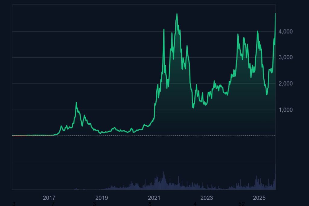 Ethereum mungkin tidak lagi memberikan lonjakan ribuan persen, tetapi tetap menjadi aset inti yang menopang ekosistem blockchain modern.