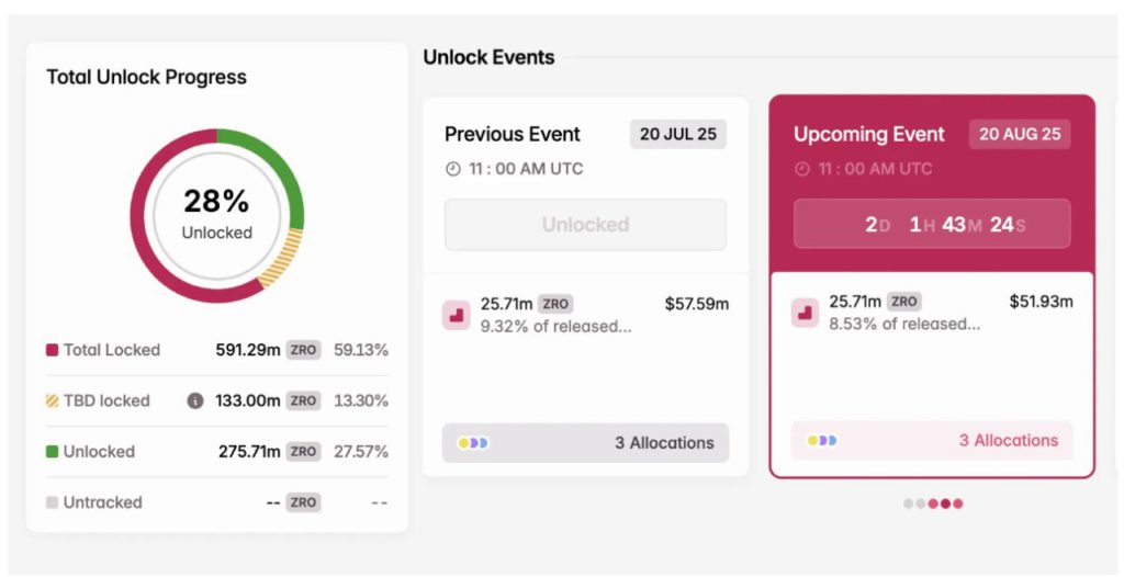 Protokol LayerZero , yang dikenal dengan kemampuannya dalam interoperabilitas antar blockchain, akan melepaskan 25,71 juta token ZRO pada 20 Agustus 2025. Nilai total pelepasan ini diperkirakan mencapai $51,9 juta, yang merupakan 23,14% dari suplai yang beredar saat ini.