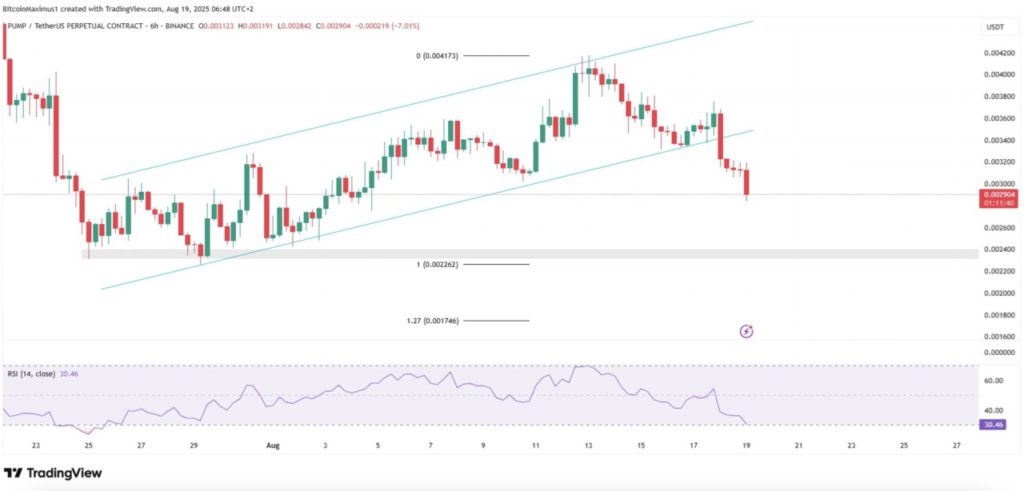 Altcoin pertama yang menunjukkan kelemahan serius di tengah penurunan pasar saat ini adalah Pump.fun , yang sudah jatuh menembus pola ascending parallel channel.