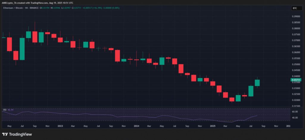 Since May, Ethereum has surged by more than 100%, while Bitcoin has only risen by about 20%. This isn’t just the usual fluctuations, but rather a clear indication of Ethereum’s macro dominance in the crypto market.