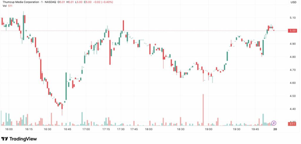 Pasca pengumuman akuisisi Dogehash, saham Thumzup mengalami penurunan tajam hampir 46% (20/8), dari $8,28 menjadi $4,60. Penurunan ini merupakan salah satu yang terbesar sejak perusahaan terdaftar di bursa.