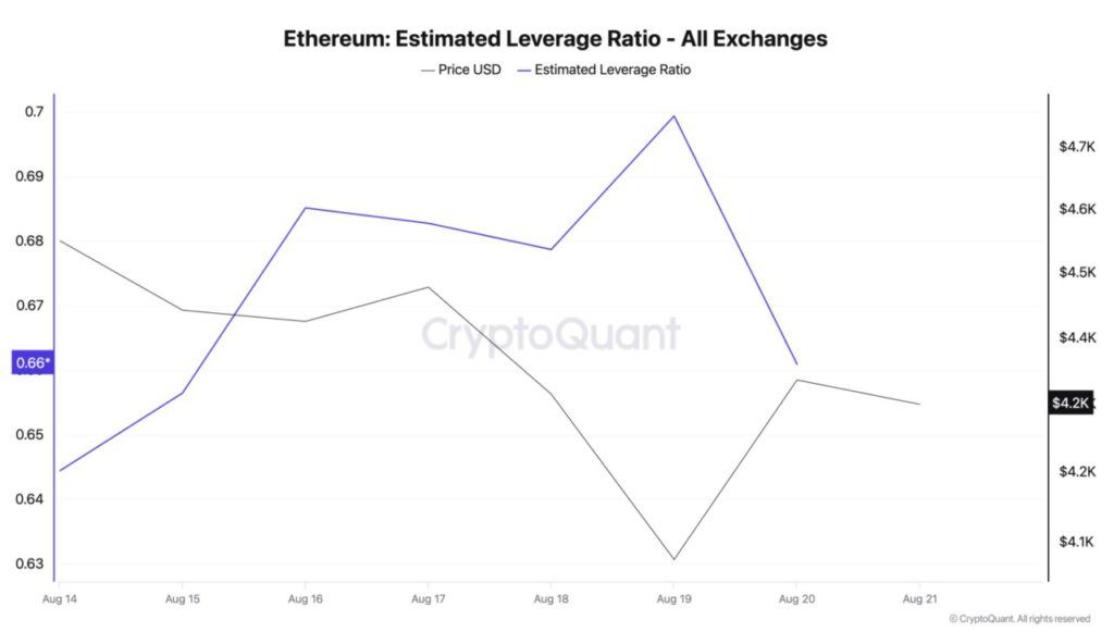 Penurunan terbaru pada Estimated Leverage Ratio (ELR) ETH juga menegaskan rendahnya tingkat kepercayaan para pemegang koin. Berdasarkan data CryptoQuant, ELR ETH saat ini berada di level 0,66 — nilai terendah dalam lima hari terakhir.