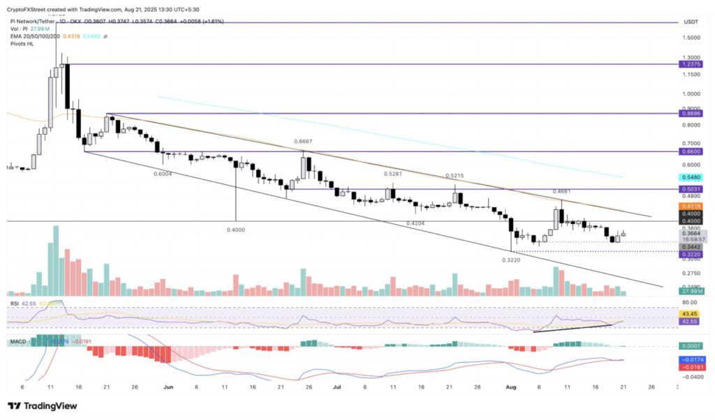 Jakarta, Pintu News – Pada 21 Agustus, Pi Network (PI) sempat diperdagangkan di level $0,3653, setelah terkoreksi dari level tertinggi $0,3747.