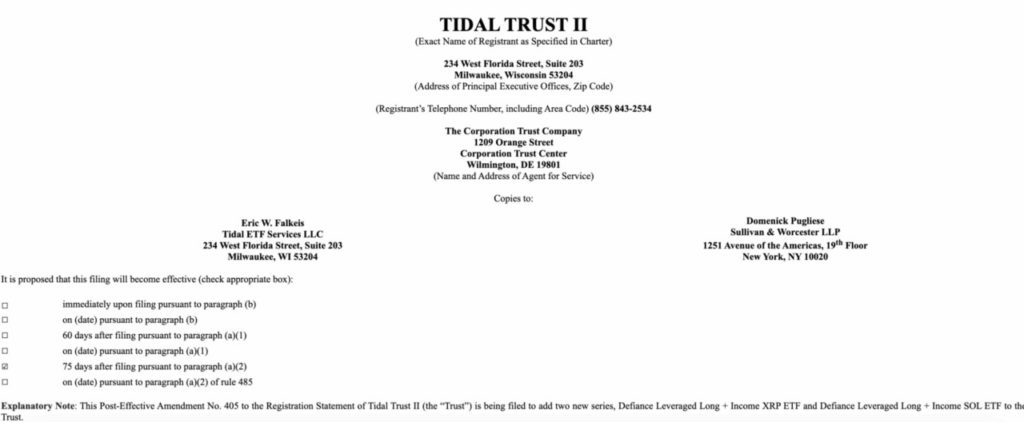 Tidal Trust II baru-baru ini mengajukan proposal kepada SEC untuk menciptakan Defiance Leveraged Long + Income XRP ETF. ETF ini dirancang untuk memberikan eksposur yang dileverasi antara 150% hingga 200% terhadap pergerakan harga harian Ripple (XRP).