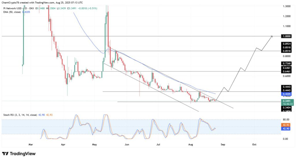 Dilansir dari Coingape (25/8), harga Pi coin telah mengalami penurunan selama beberapa bulan, terjebak dalam saluran tajam yang membuat pembeli kesulitan. Setiap upaya untuk melonjak selalu ditolak, namun kemiringan candle-candle terbaru menunjukkan adanya energi yang mulai terkumpul.