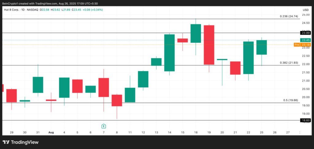 Meskipun ada pengumuman ini, saham Hut 8 diperdagangkan lebih rendah di pra-pasar pada $23,18, dibandingkan dengan penutupan Senin sebesar $23,45. Jika penurunan ini berlanjut saat pasar dibuka, HUT bisa jatuh menuju $21,93. Namun, jika permintaan meningkat, HUT mungkin akan menguji kembali resistensi dekat $23,89.