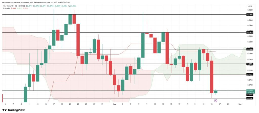 Jika gagal menarik dukungan yang cukup, W bisa turun di bawah $0.070, menandakan breakdown teknikal lebih lanjut. Gerakan seperti itu akan menghilangkan pengaturan optimis dan mendorong aset ke level yang lebih lemah.