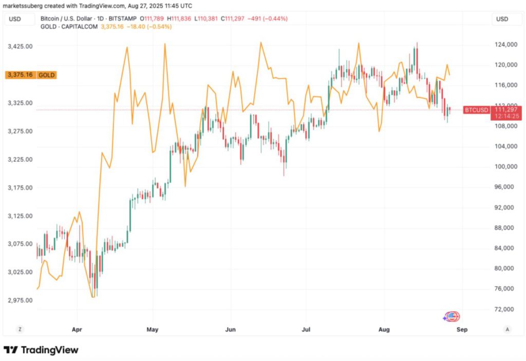 Donny menambahkan bahwa dia melihat BTC/USD meniru pergerakan emas setelah periode keterlambatan, sebuah hubungan klasik yang terus berlanjut dalam beberapa tahun terakhir.