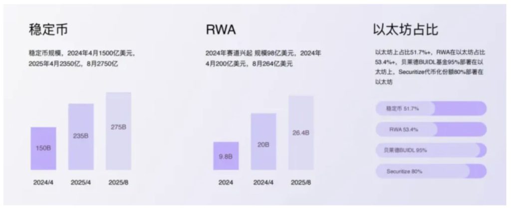Ethereum kini menempati posisi strategis dalam ekosistem cryptocurrency, dengan aktivitas stablecoin dan aset dunia nyata lebih dari separuhnya berjalan di jaringan ETH. Trend Research memperkirakan kapitalisasi pasar Ethereum bisa melampaui Rp49.038 triliun, mengalahkan Bitcoin.