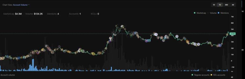 Meskipun saat ini telah menurun, jumlah penyebutan ini kemungkinan besar akan kembali melonjak jika harga memecoin tersebut naik lagi — karena harga dan popularitas di media sosial biasanya berjalan seiring.