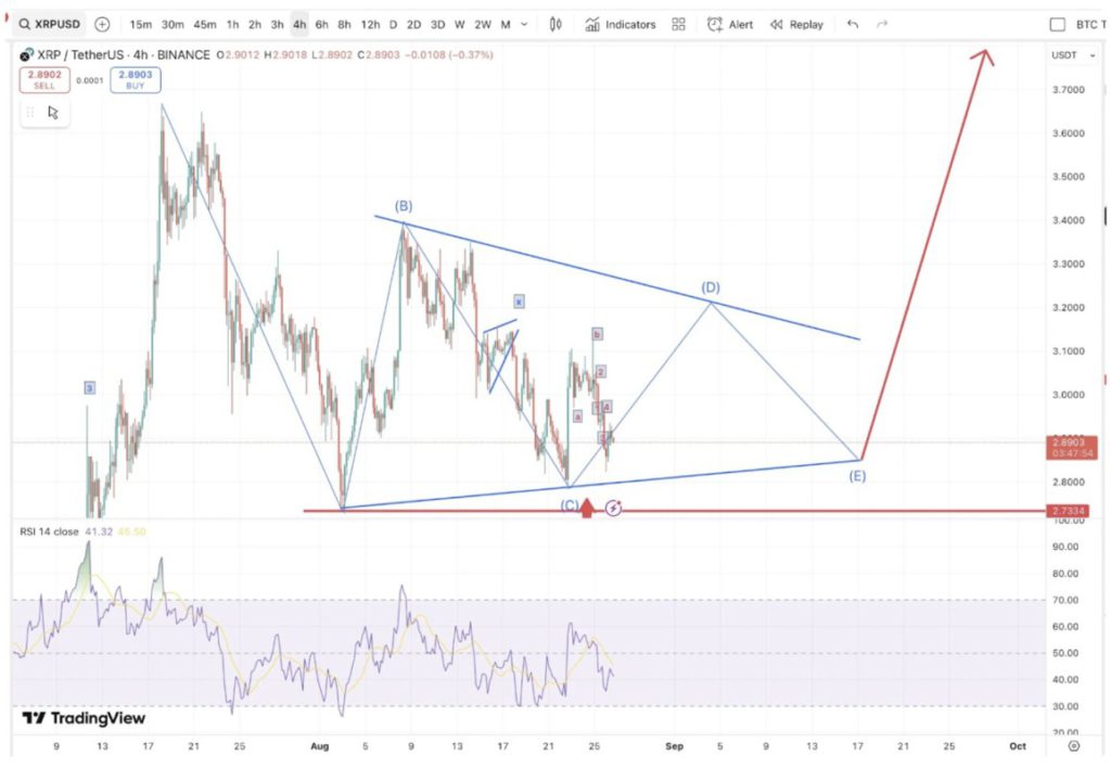 Pada grafik teknis, XRP sedang membentuk pola segitiga simetris, sebuah setup klasik sebelum pergerakan besar. Jika berhasil menembus di atas $3, XRP bisa kembali ke puncak sebelumnya di $3,66 dan kemudian menuju tonggak $4.
