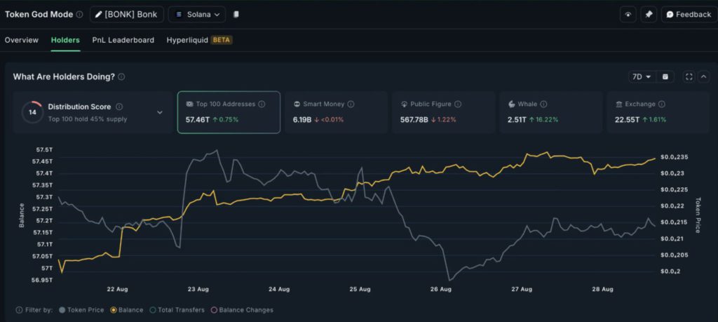 Di saat yang sama, bursa mencatat arus keluar sebesar 1,61%, menunjukkan bahwa investor ritel masih menjual sementara para whale justru terus mengakumulasi. Perbedaan arah ini sering kali menjadi sinyal pergerakan harga yang lebih kuat, dan merupakan salah satu alasan utama mengapa BONK menjadi salah satu koin meme yang patut diperhatikan di bulan September.
