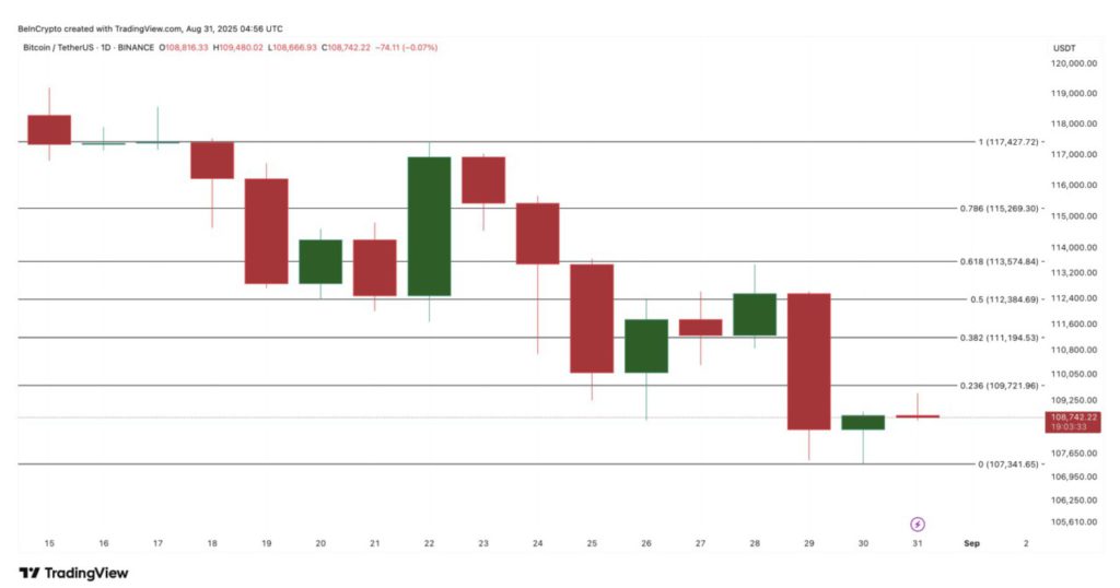 Jakarta, Pintu News – Pada akhir Agustus, Bitcoin sempat diperdagangkan di sekitar $108.700, stagnan dalam sehari namun masih turun lebih dari 6% dalam sebulan terakhir dan sekitar 5% dalam seminggu terakhir.