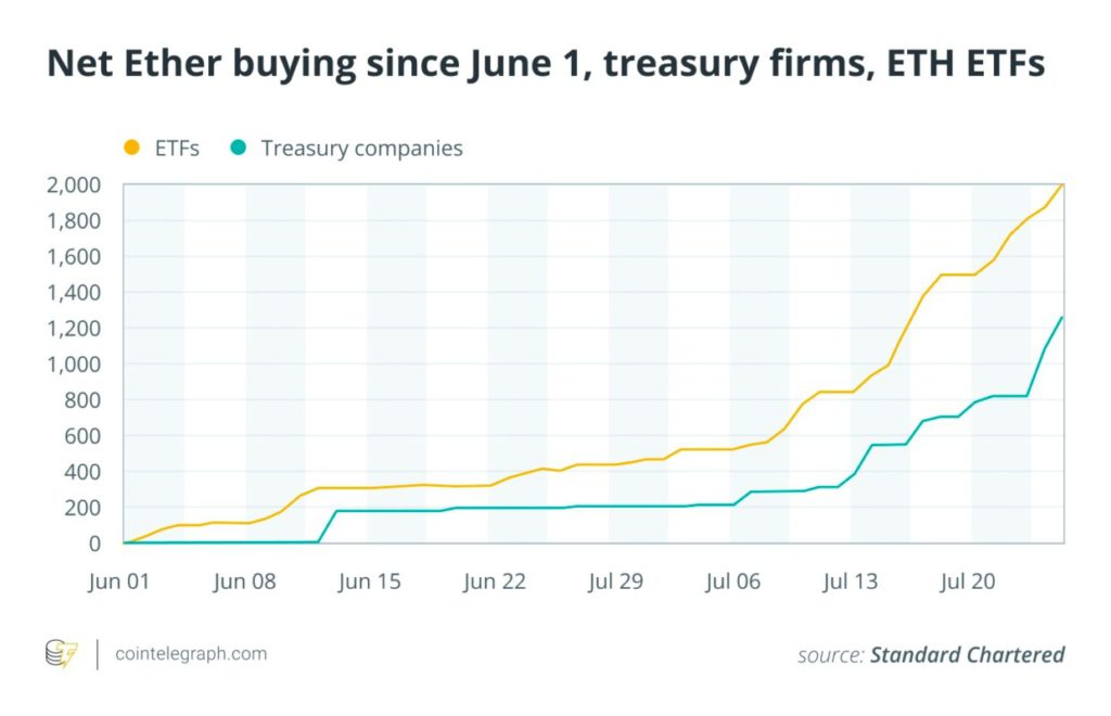Selain itu, Grayscale ETHE, Fidelity Ethereum Fund (FETH), dan Bitwise juga ikut membangun eksposur mereka terhadap Ethereum. Total akumulasi institusi ini mencapai lebih dari 5 juta ETH, menjadikan ETH sebagai aset treasury yang makin dianggap serius.