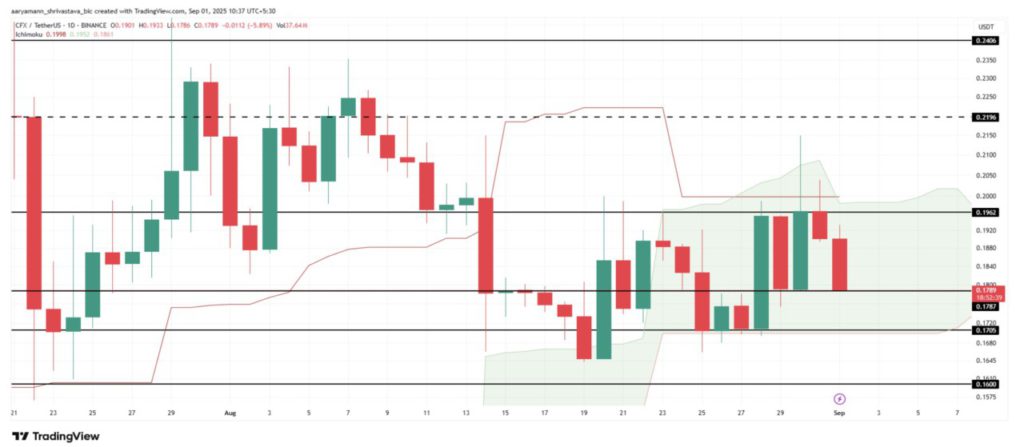Secara historis, pembaruan jaringan sering dianggap sebagai sinyal bullish, dan CFX bisa mendapatkan keuntungan serupa. Altcoin ini berpotensi bangkit dari level support di $0,178 dan menembus resistance di $0,196.