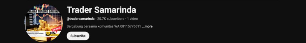 Trader Samarinda adalah kanal YouTube yang aktif mengedukasi komunitas trader Samarinda. Di sini, kamu akan menemukan berbagai video edukasi yang memberikan pengetahuan mendalam tentang dunia crypto, saham, dan forex. Komunitas ini fokus pada trader pemula, tetapi tidak jarang juga berbagi tips dan trik untuk trader berpengalaman.