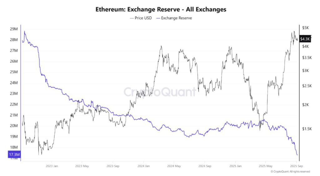 Ini menunjukkan betapa besarnya kepercayaan dan ekspektasi pasar terhadap Ethereum (ETH). Selain itu, jumlah Ethereum (ETH) yang tersedia di bursa telah menurun drastis, dengan hanya sekitar 17,3 juta ETH yang tersisa di bursa pada minggu pertama September. Aliran masuk dana ke dalam ETF Ethereum juga terus mengecilkan jarak dengan Bitcoin , menandakan pergeseran minat investor ke arah Ethereum (ETH).