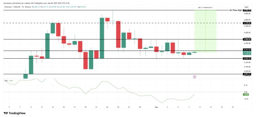 Kondisi ini bisa mendorong ETH menembus $4.331 dan bergerak menuju $4.500, sekaligus mempersempit jarak menuju harga tertinggi sepanjang masa [ATH] di $4.956. Meski demikian, risiko tetap ada apabila sentimen investor melemah. Jika tekanan jual meningkat, Ethereum bisa kesulitan menjaga momentum kenaikan.