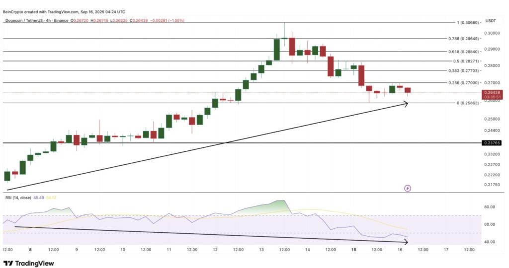 Saat ini, beberapa level penting tengah diuji. Area support berada di $0,25 dan $0,23. Di sisi atas, jika DOGE berhasil merebut kembali level $0,29, ini bisa membuka jalan menuju $0,30 atau lebih tinggi.
