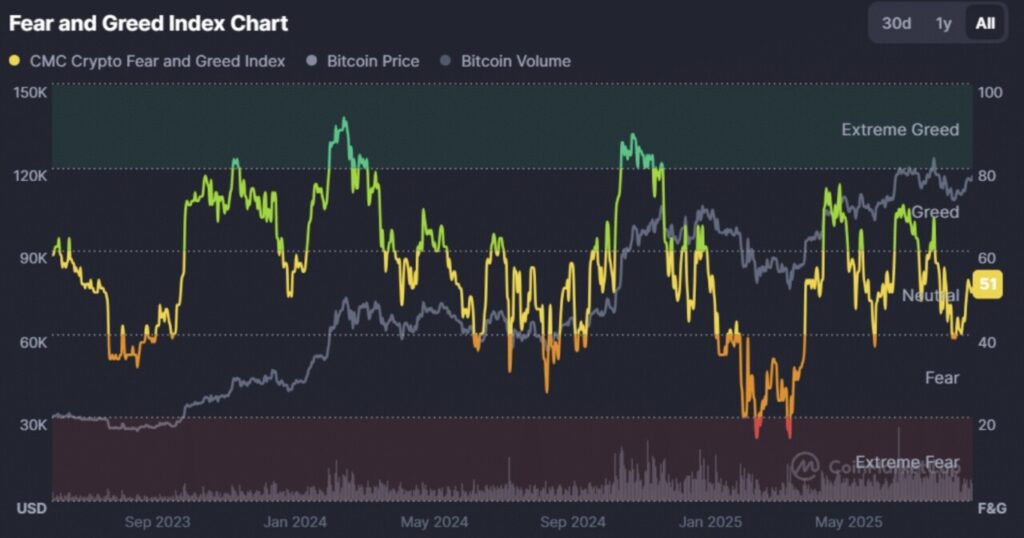 Namun, euforia pasar belum tampak. Indeks Ketakutan dan Keserakahan (Fear and Greed Index) tidak menunjukkan tanda-tanda kegembiraan ekstrem, mencerminkan perbedaan mencolok dibandingkan dengan reli altcoin sebelumnya.