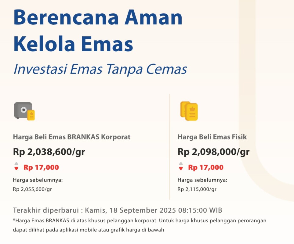 Harga tersebut berlaku khusus untuk pembelian korporat dan fisik, dan dapat berbeda untuk pelanggan individu yang mengakses melalui aplikasi resmi Brankas.